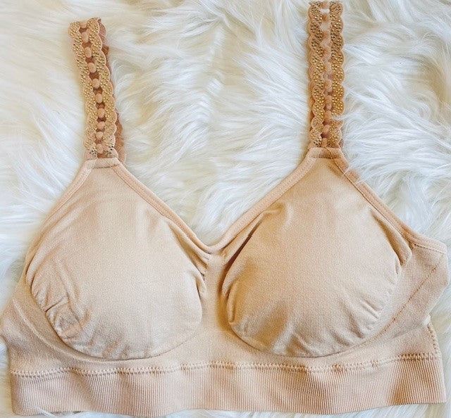 Nude Bra w/Nude Loop Gold Studs Straps