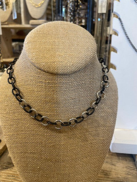 Black Texture Layering Chain w/ Mixed Metal 16"