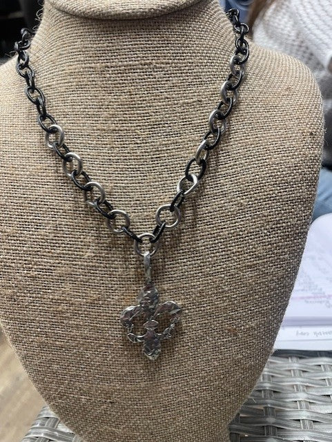 Mix Metal Chain w/ Fleur de Lis 16"-18"