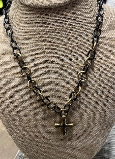 Textured Mix Metal Chain w/ Cross 16"-18" Chain