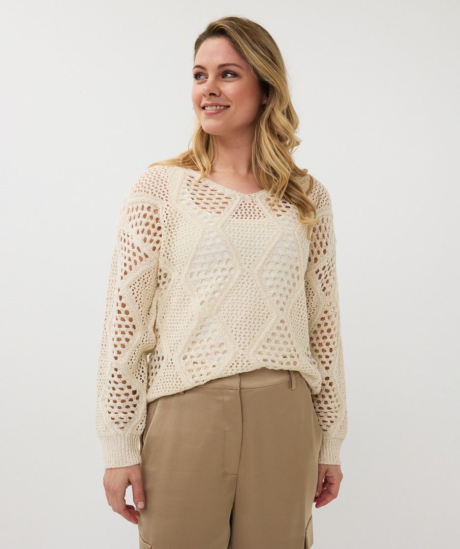 Open Knit Sweater w/Check Pattern. 47% Polyester, 40% Acrylic, 13% Acetate.