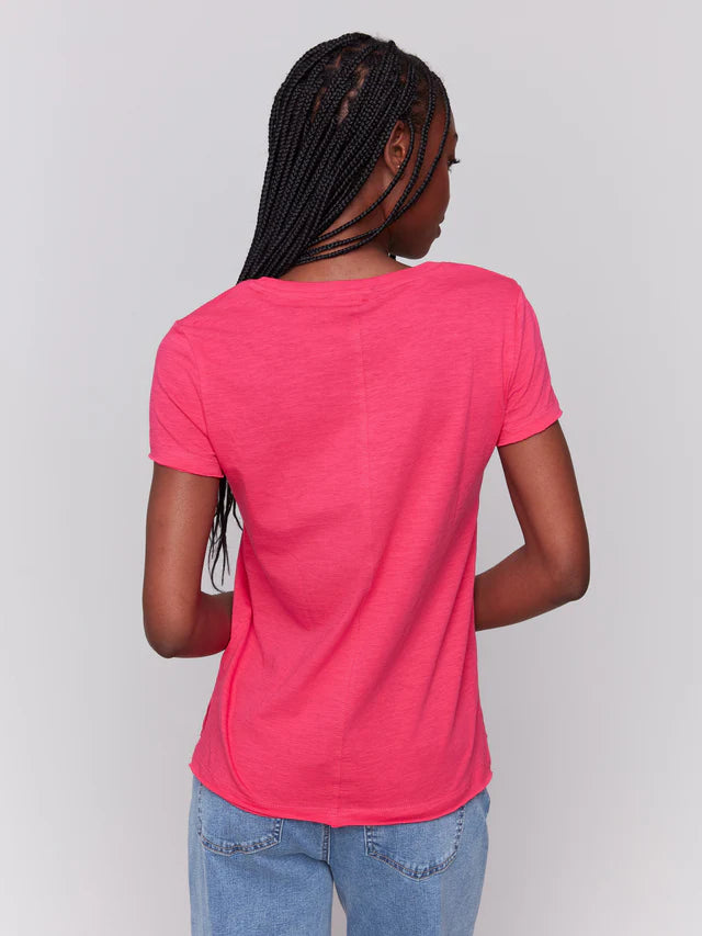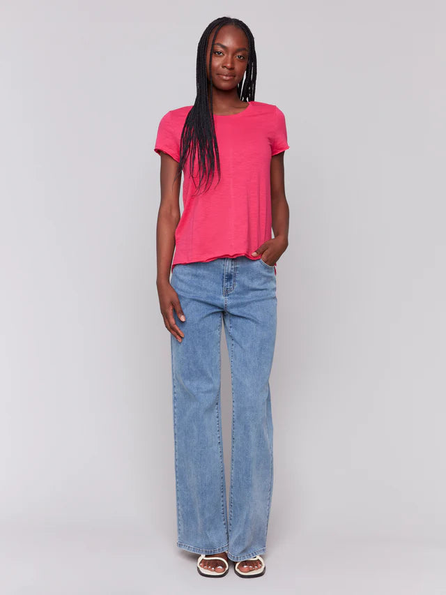 Organic Cotton Slub Short Sleeve Knit Top With Front Seam Detail