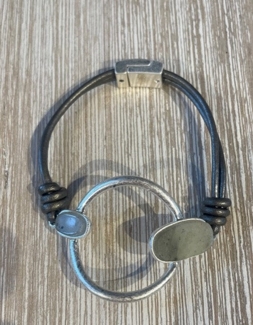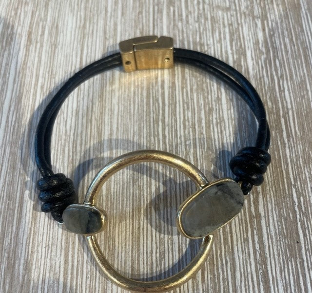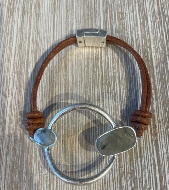 Oval Leather Bracelet w/ Stone