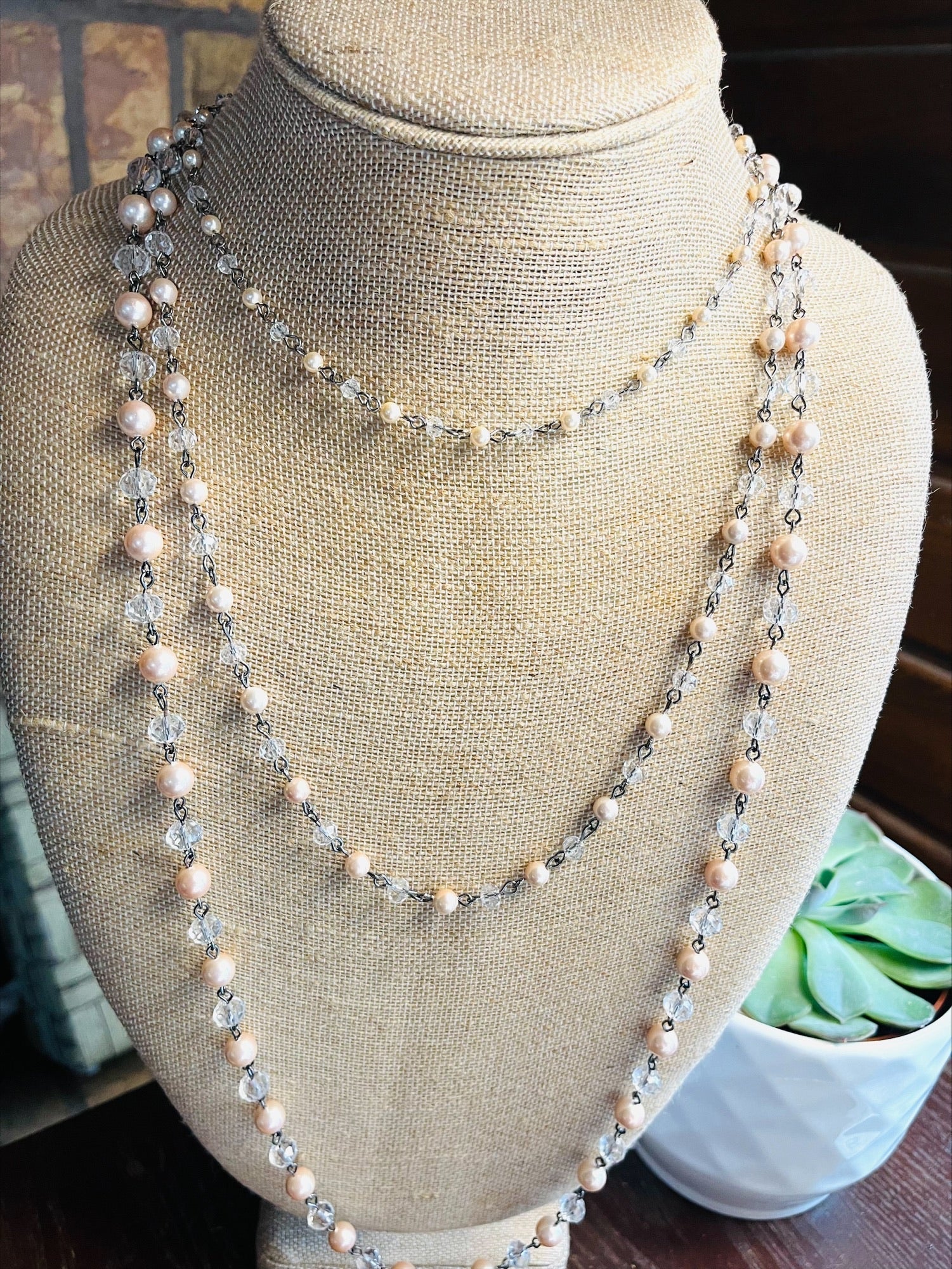 Pearl Collection White Pearl & Pink Crystal Triple Chain