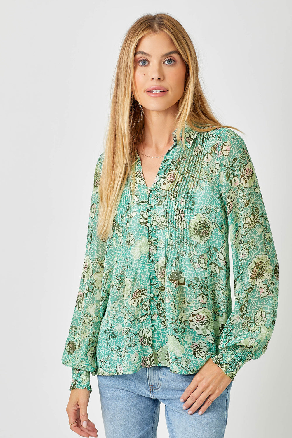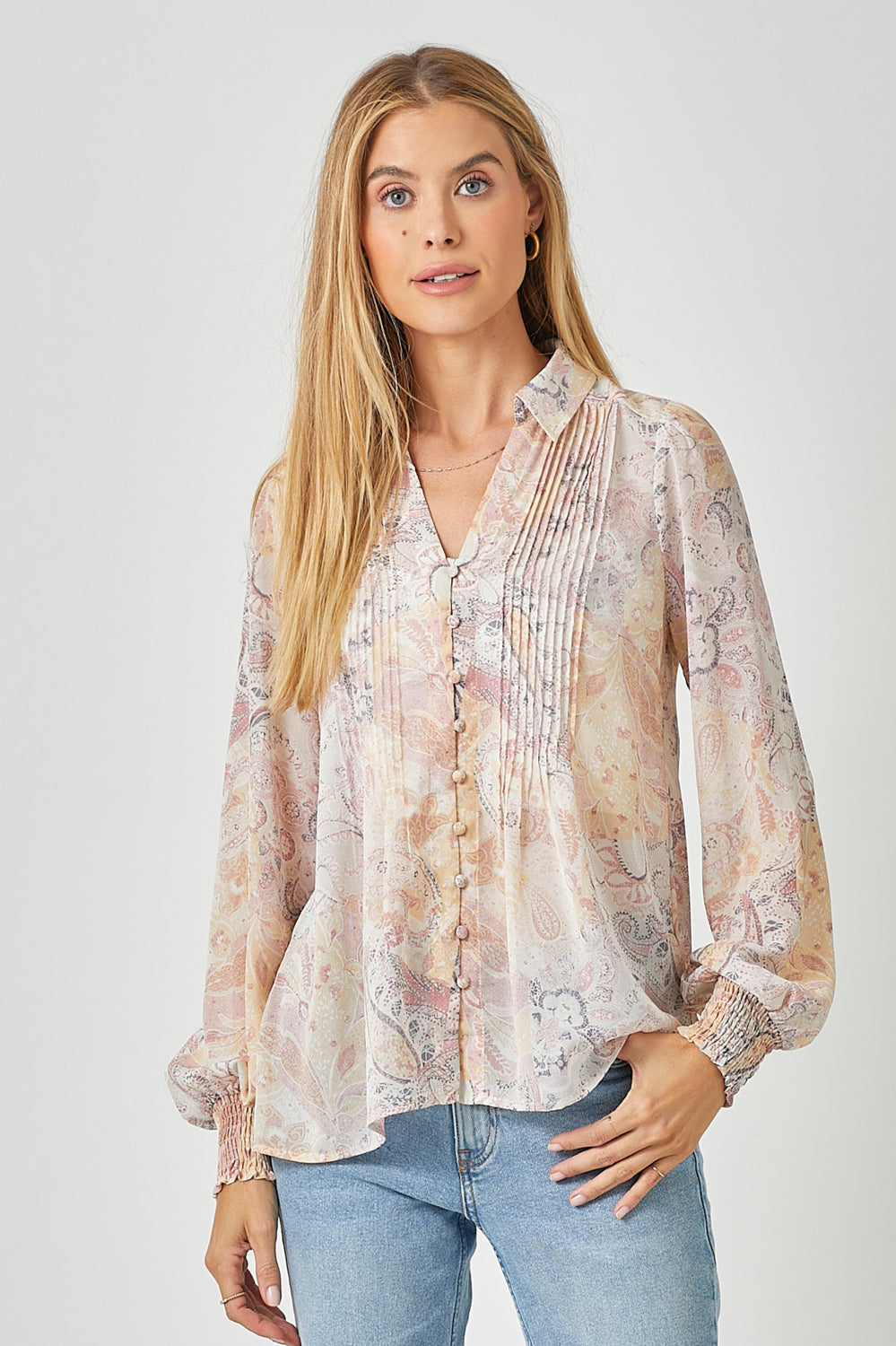 Pintuck Print Blouse