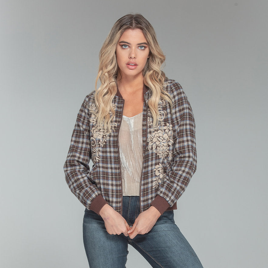 Plaid Flannel Baseball Jkt w/ Embroidery