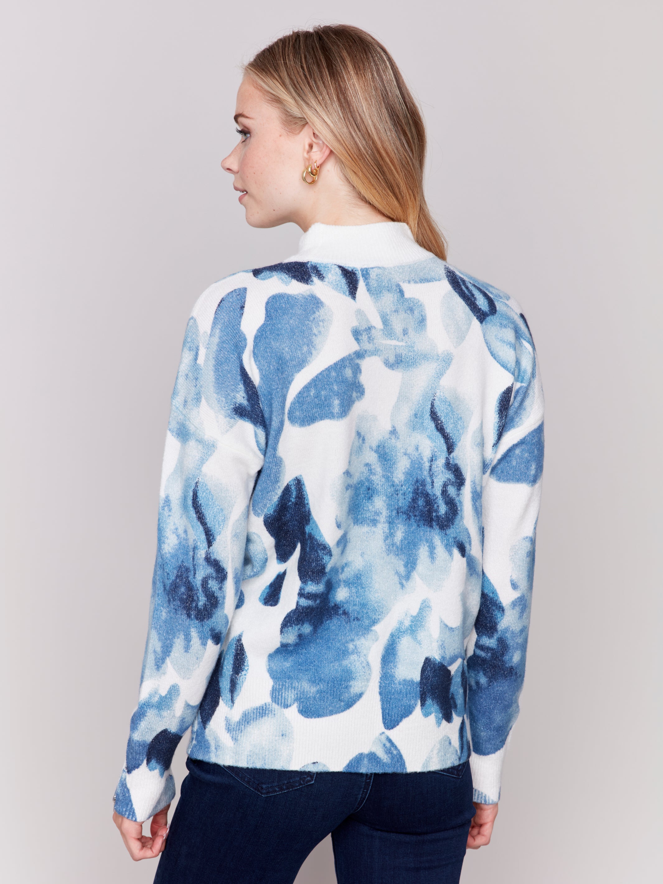 Printed Mock-Neck Sweater With Zipper Details On Sleeves