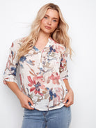 Stay cool and stylish in this printed cotton gauze top, featuring roll-up sleeves for a relaxed vibe that's perfect for sunny days.