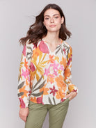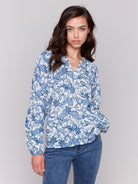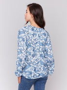 Printed Viscose Long Sleeve Popover Blouse