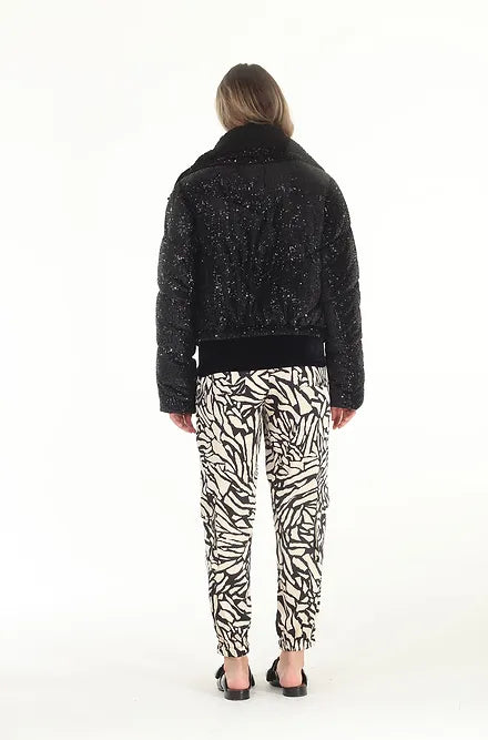 Sequin & Sherpa Puffer Coat-Lined. Full Zip Front. Sherpa Collar. Drawstring Waist. 100% Polyester. Dry Clean Only.