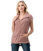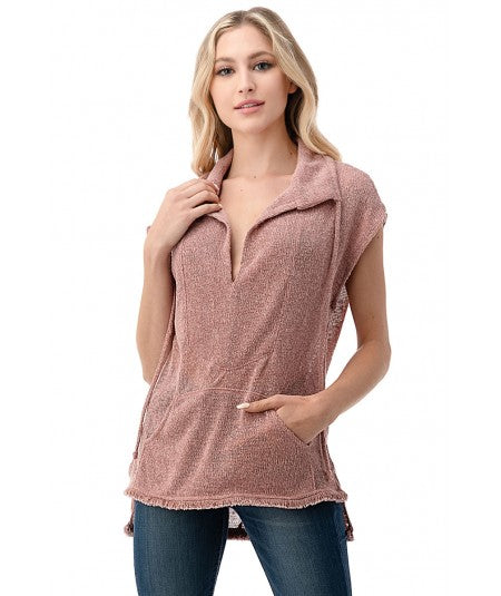 Pullover Loose weave Capped Top w/ Front Pocket