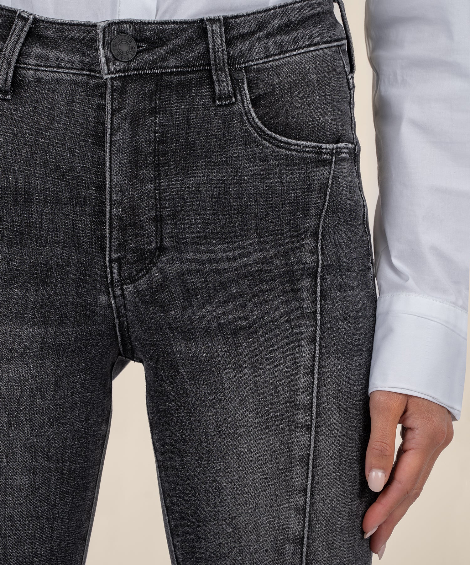 - Zip fly with button closure