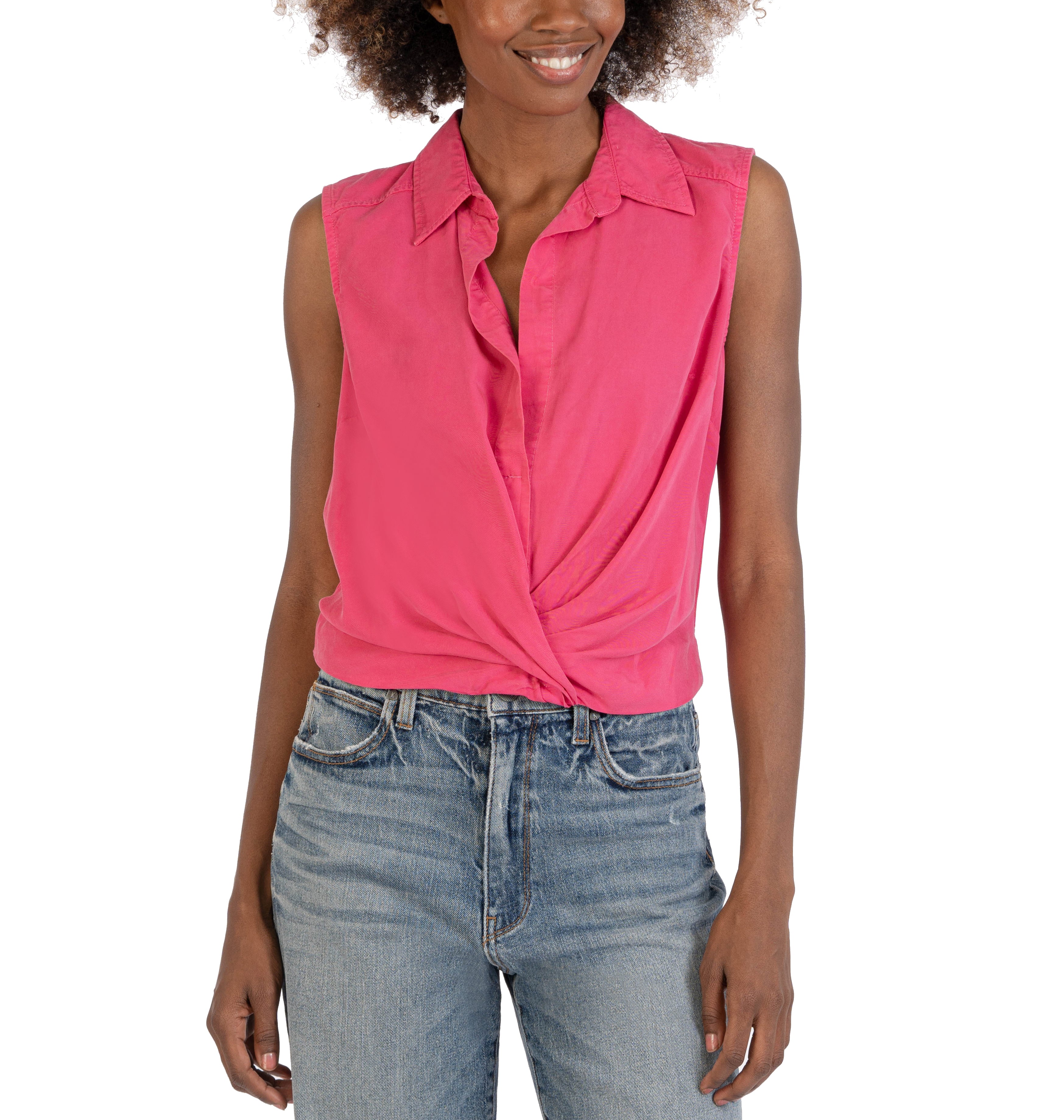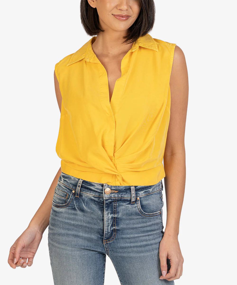 Renata - Front Twist Sleeveless Blouse W/ Collar