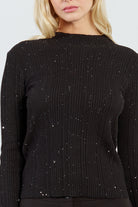 Ribbed Knit Sweater w/ Studded Rhinestones