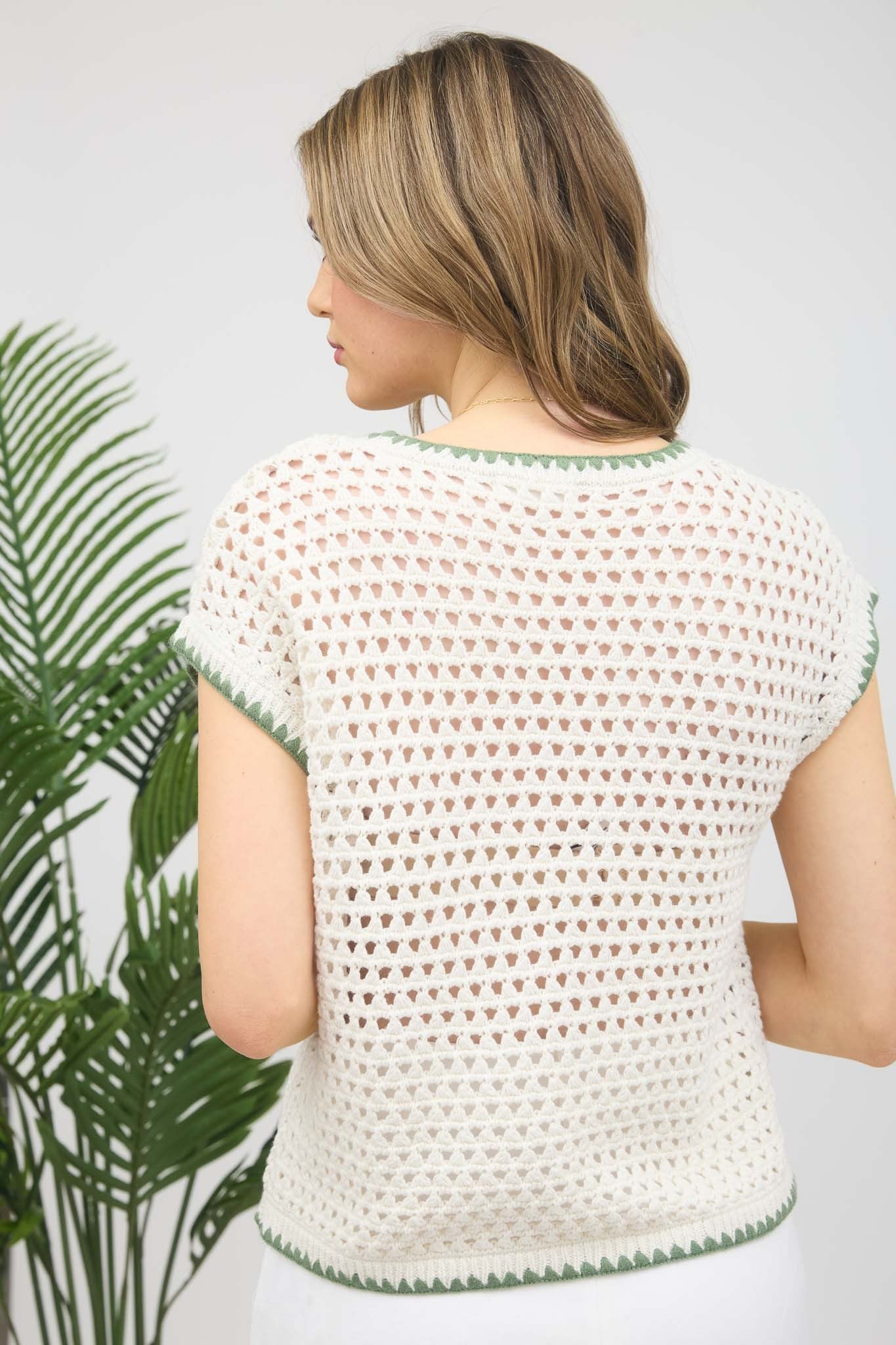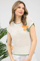 Rose Crochet Knit Short Sleeve Pullover Sweater
