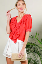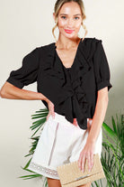 V-Neck Ruffle Detail Blouse