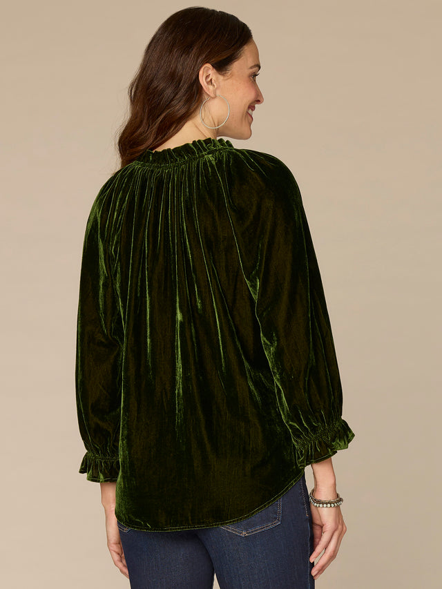• Three quarter blouson sleeve with ruffle edge