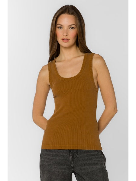 Scoop Neck Ribbed Tank. 49% Cotton, 49% Tencel, 2% Spandex.