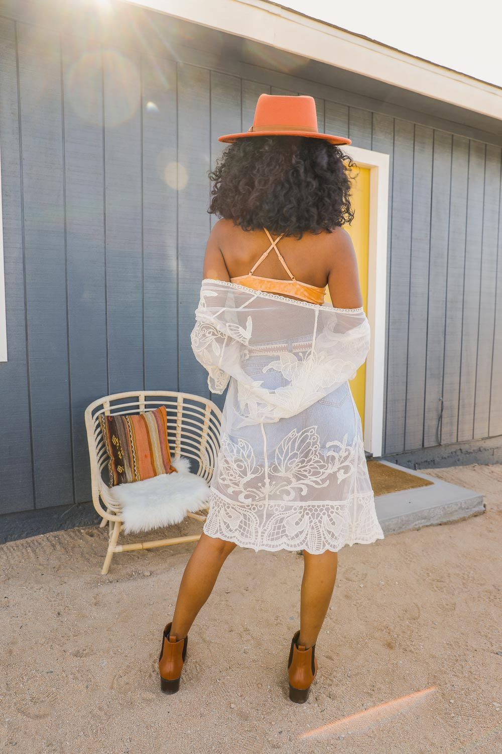 Sheer Embroidered Lace Kimono