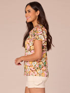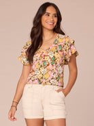 Short 3 Tiered Bell Sleeve V-Neck Printed Knit Top