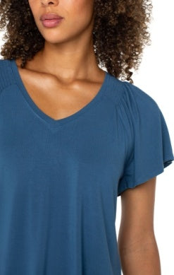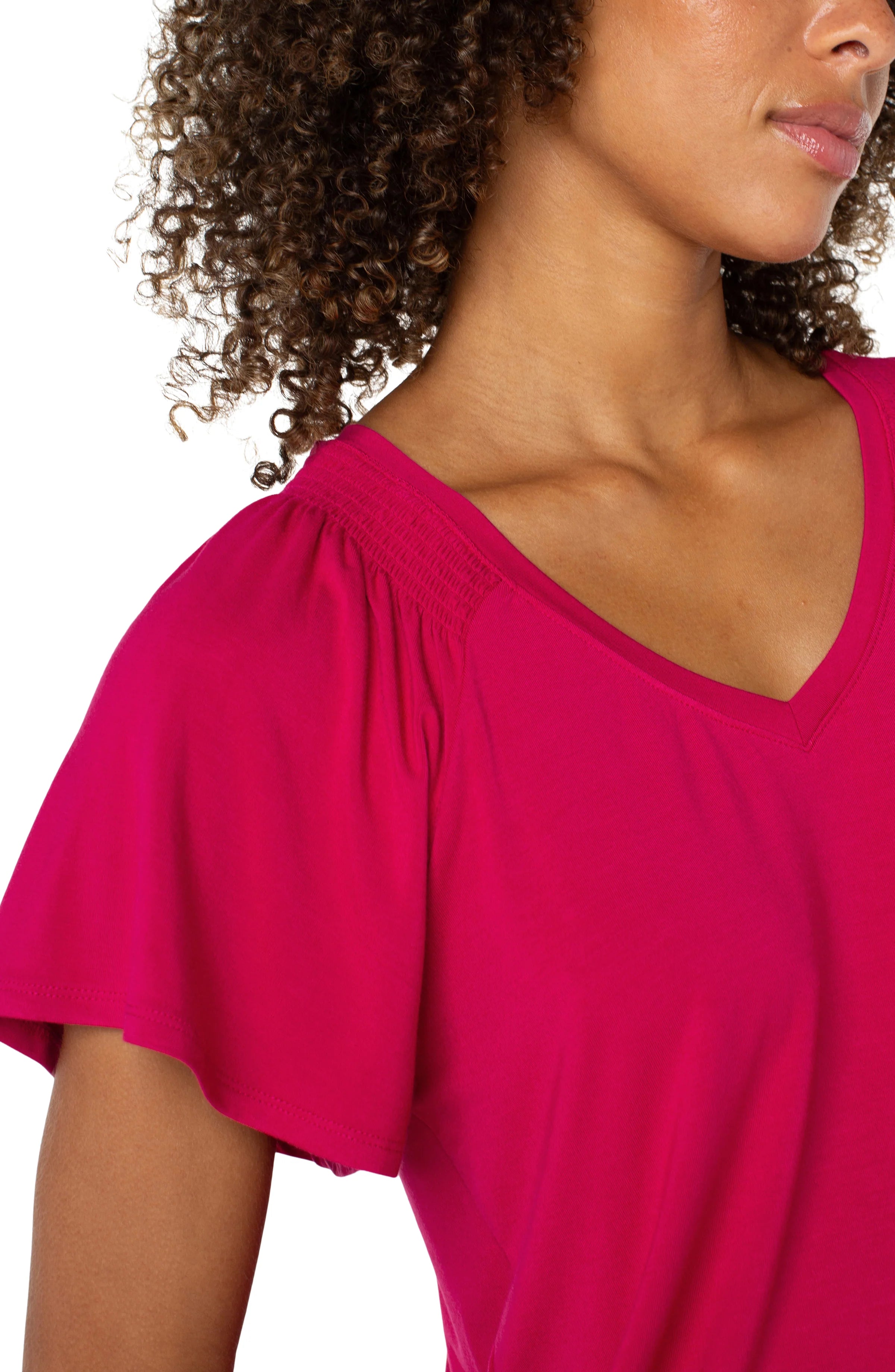 Short Flutter Sleeve V Neck Knit Top 25"Hps