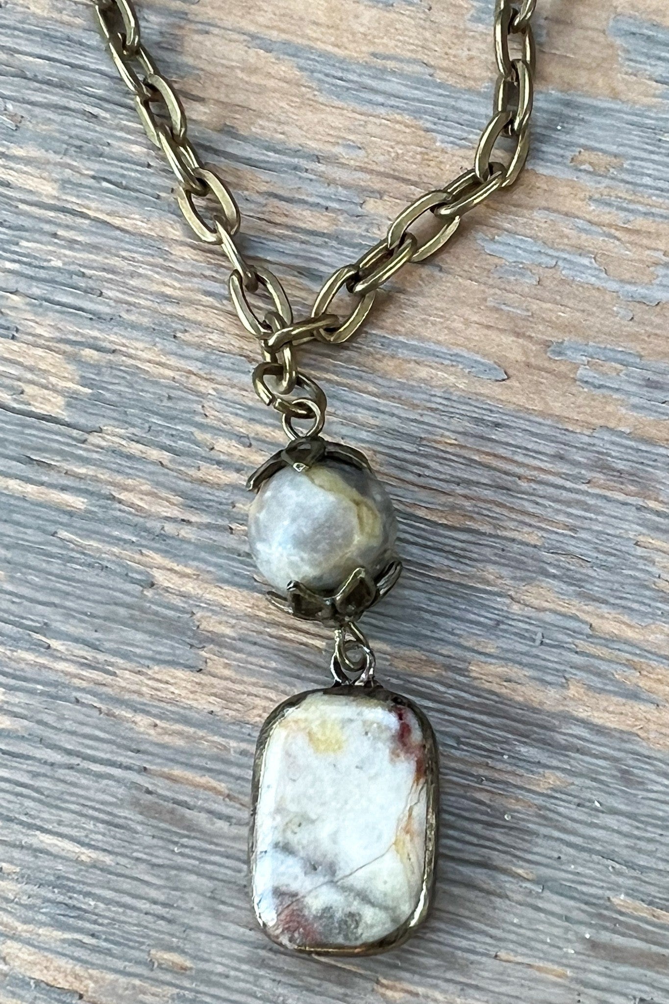 Short Bronze Chain w/Bead & Soldered Pendant. Lobster Claw & 2" Extension.