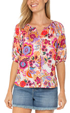 Short Sleeve Button Front Shirred Blouse