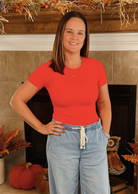 Stay on trend and feel comfortable in this Short Sleeve Crop Top. With a crew neck and seamless fit, this top offers a new cropped length for a stylish twist. Perfect for pairing with high-waisted bottoms, this top will elevate your outfit effortlessly.