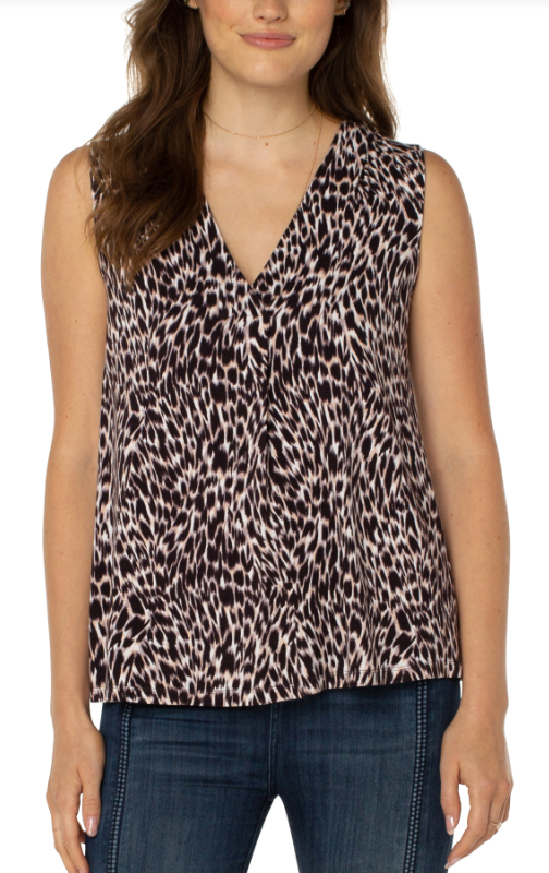 Sleeveless V-Neck Knit top W/Tucks