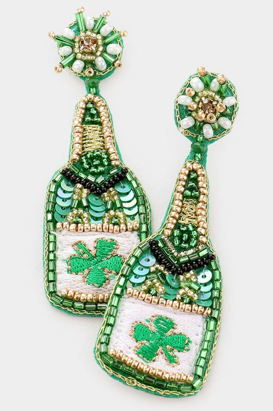 St Patrick's Day Champagne Bottle Earrings