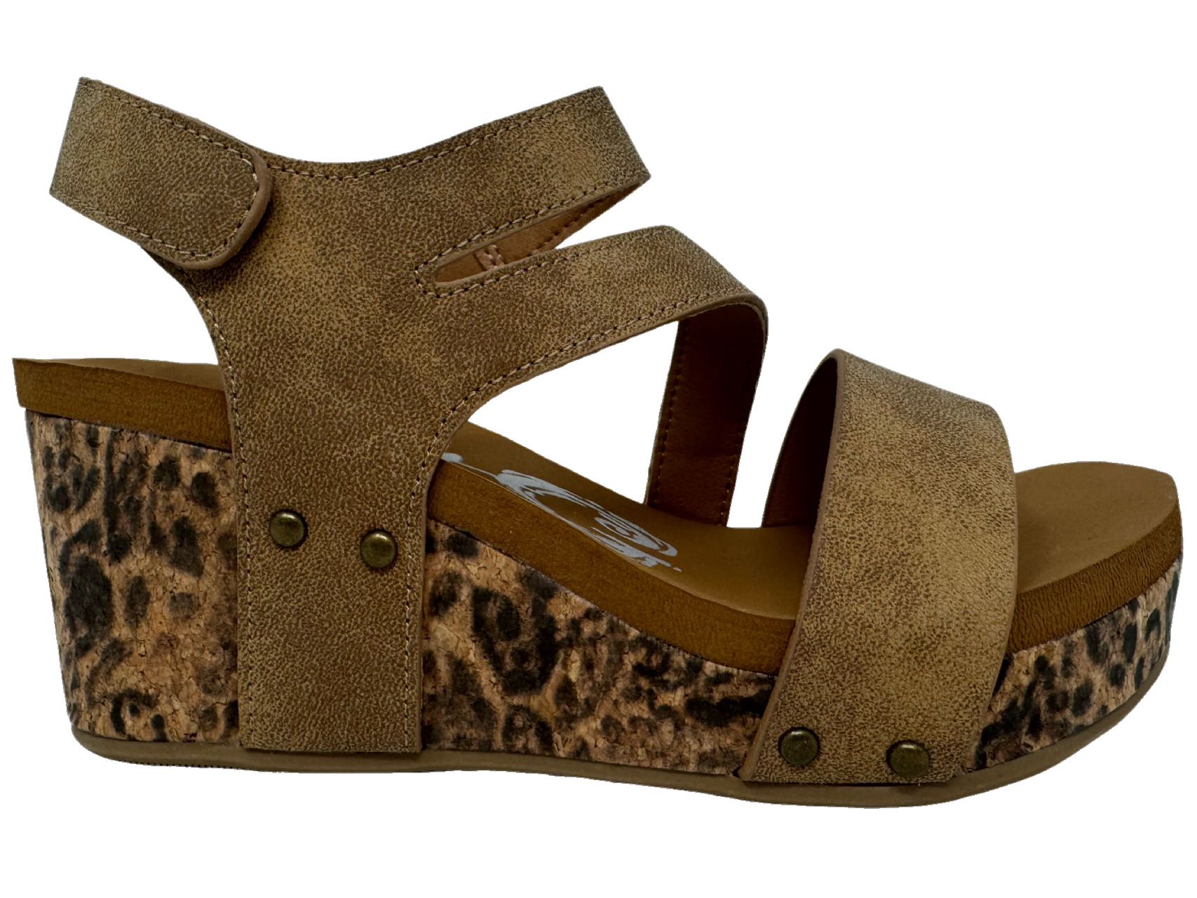 Strappy Platform Wedge Sandal w/Velcro Closure For Adjustment. Animal Print Pattern on the Sole.