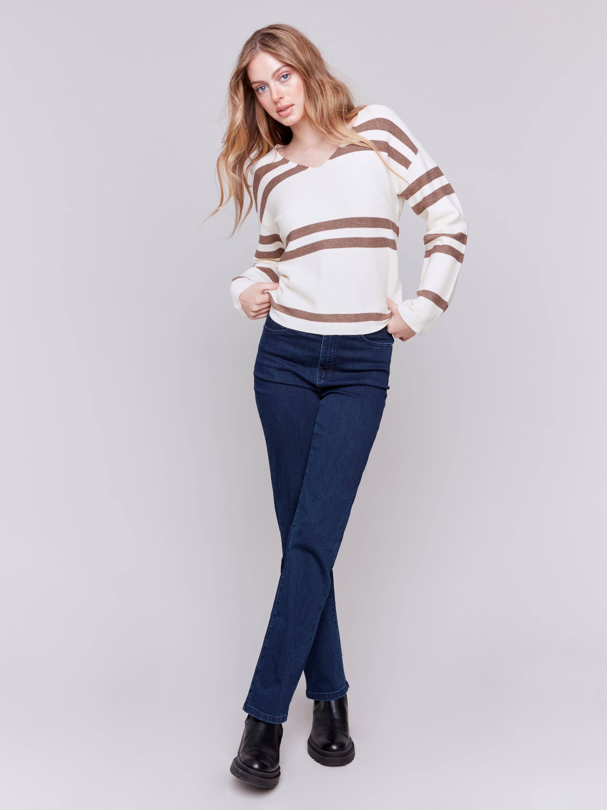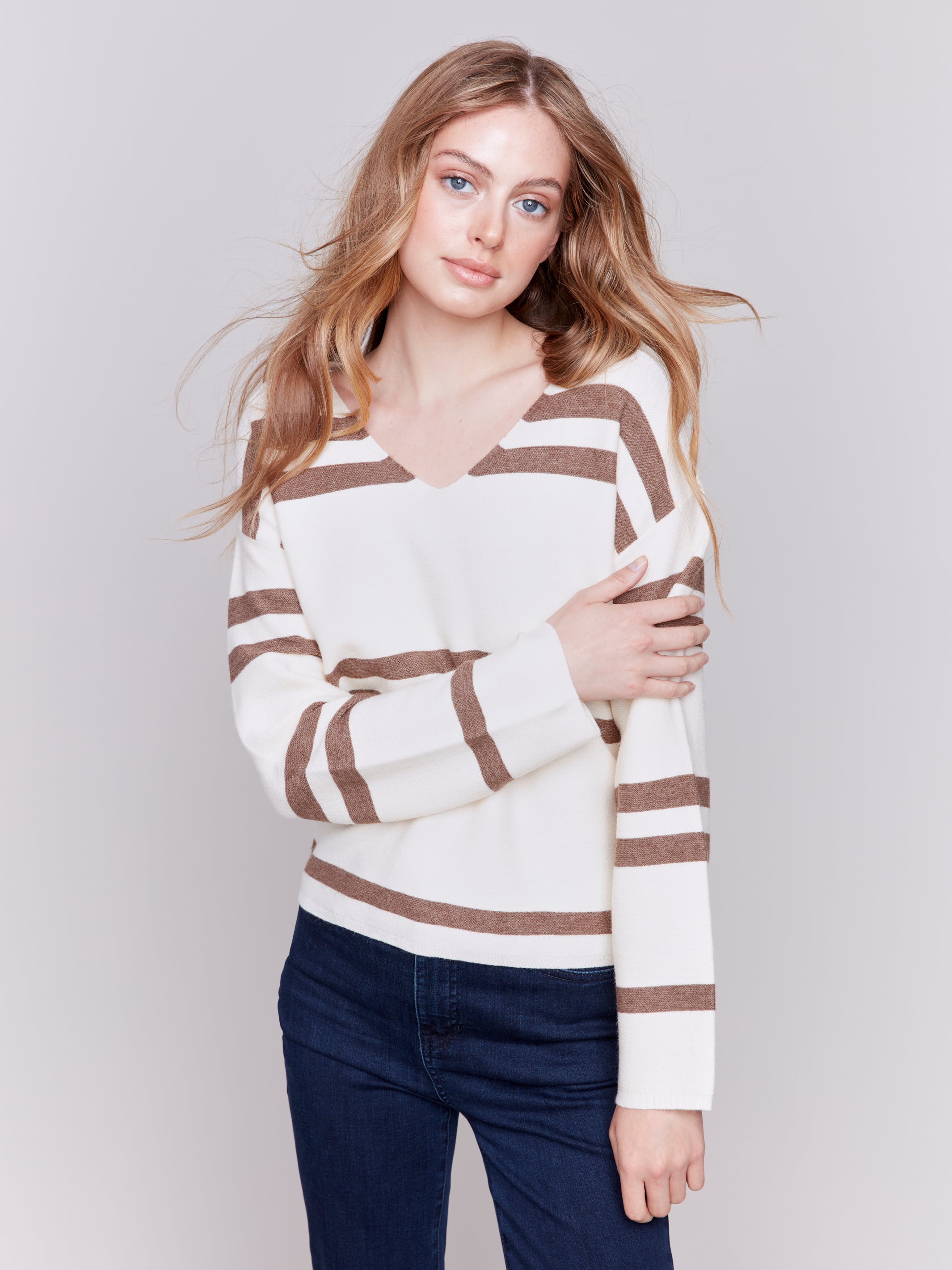 Striped V Neck Sweater