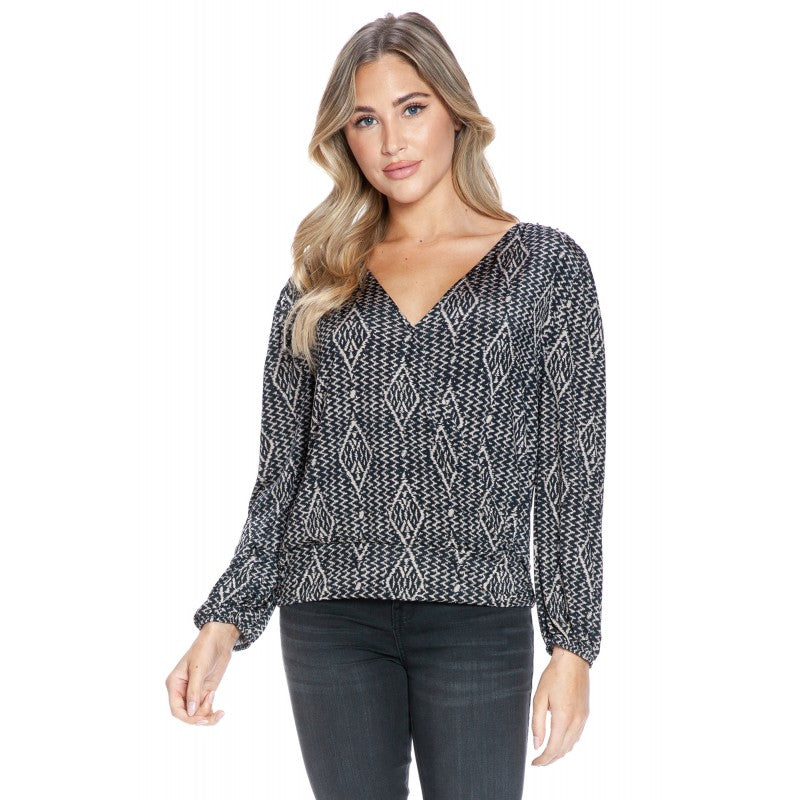 Long Sleeve Surplice Tie Back Top. 96% Polyester, 4% Spandex.