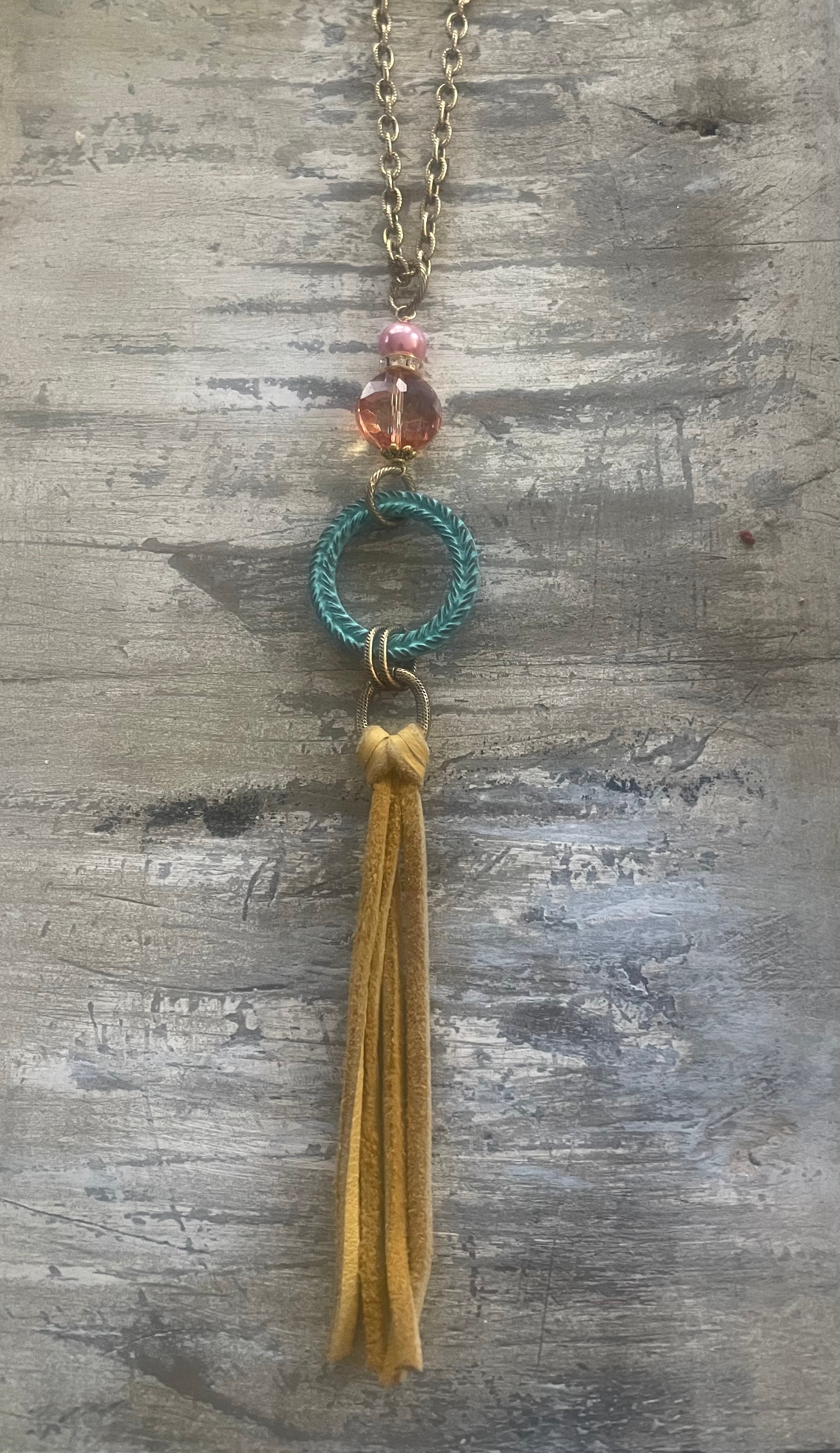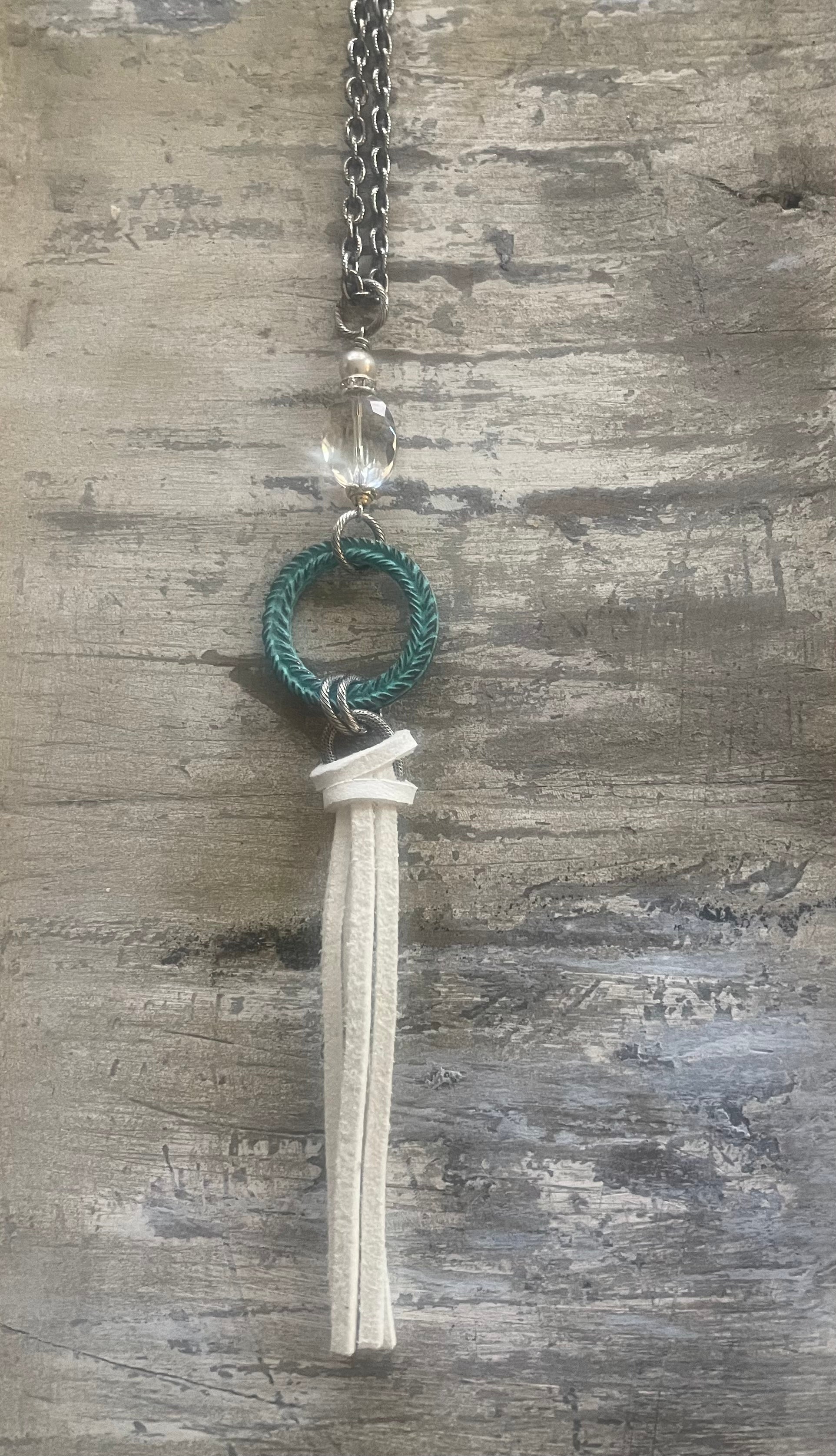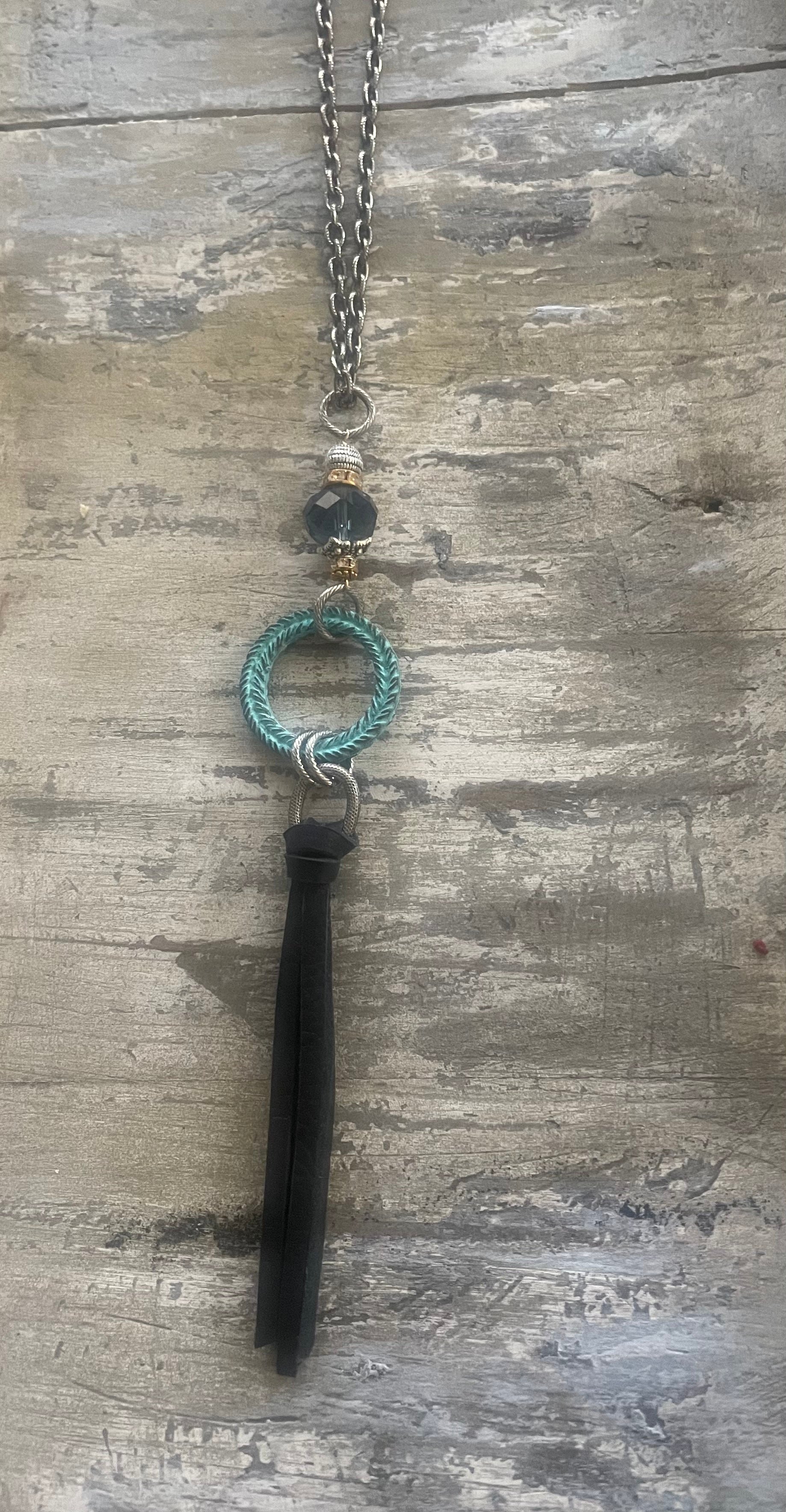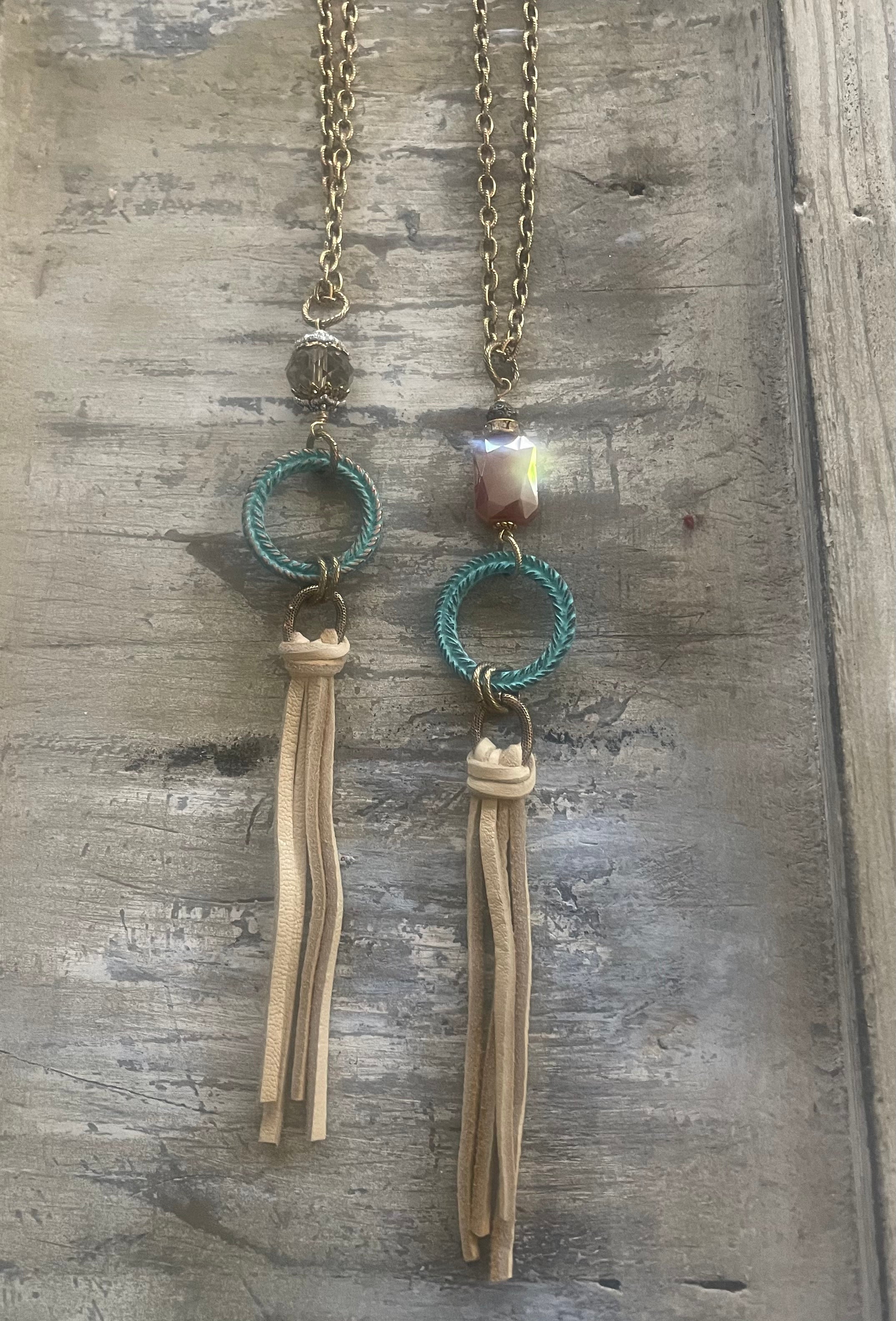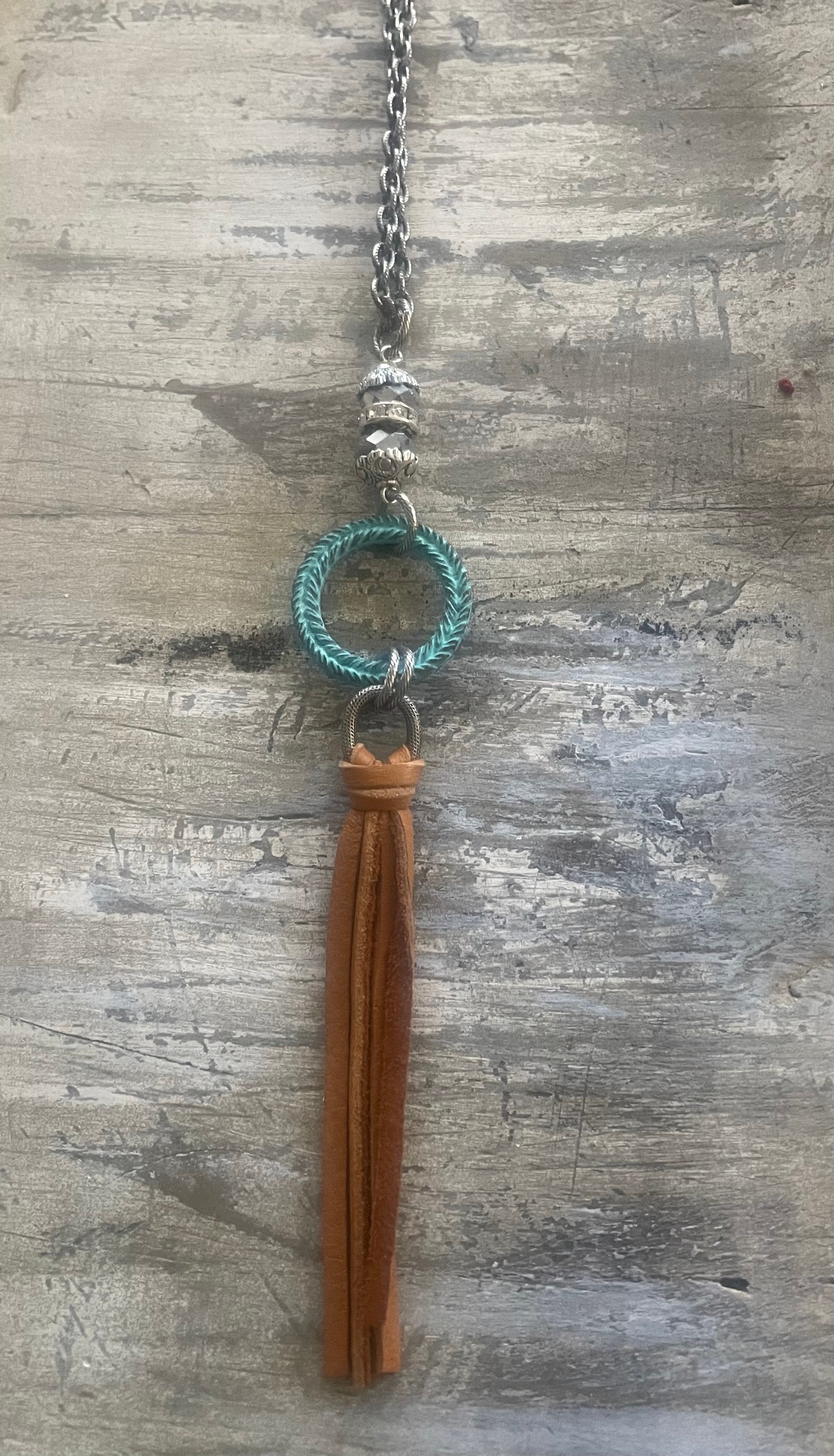 Turquoise Ring Leather Tassel Long Necklace