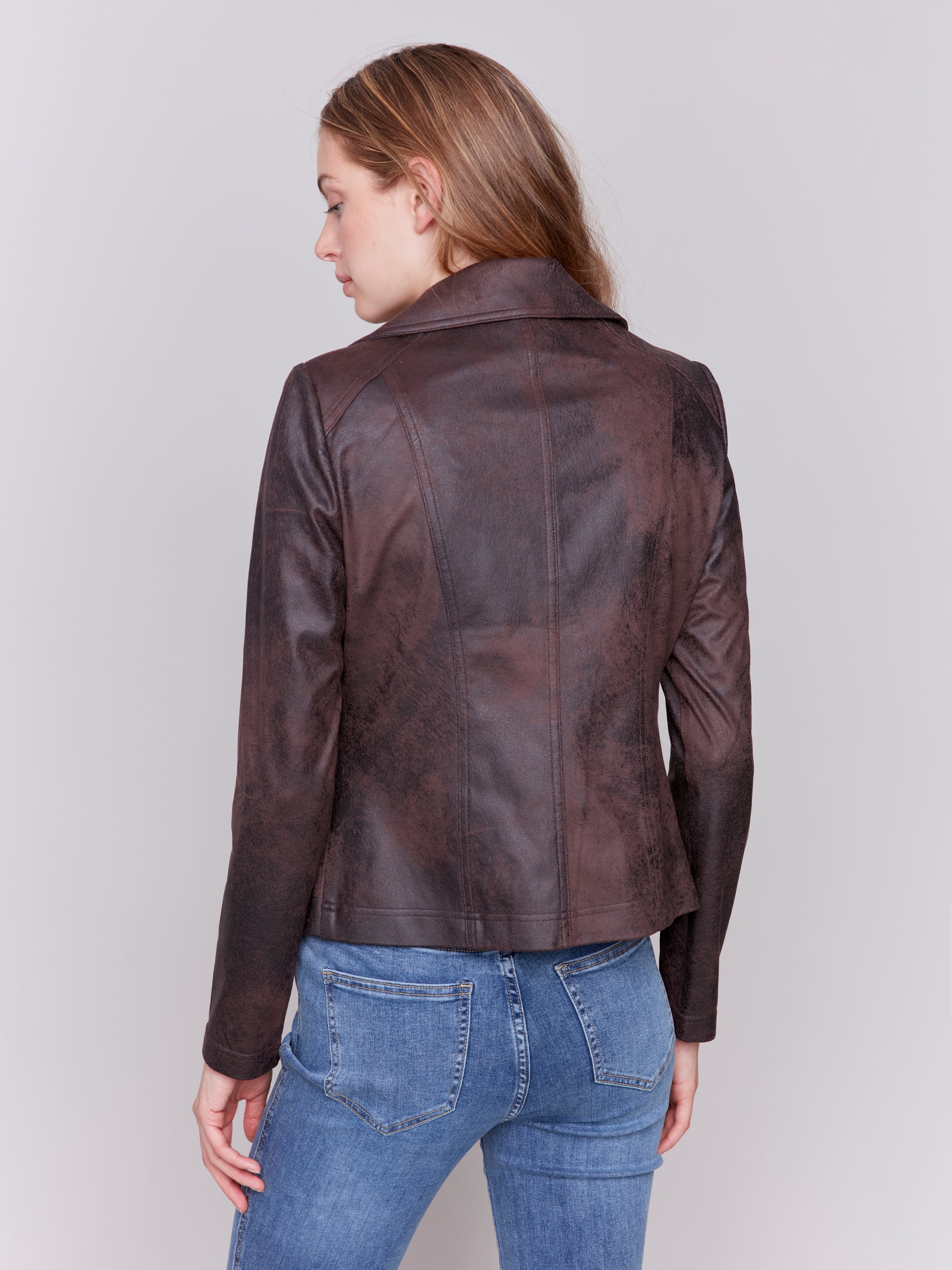 Vintage Faux Leather Perfecto Jacket With Fake Pockets and Zipper Details