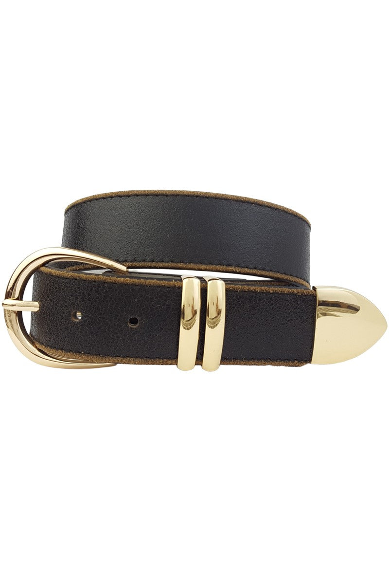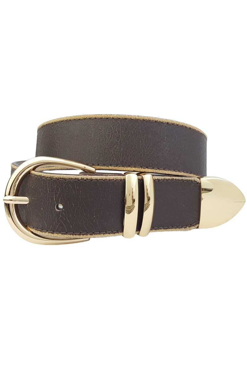 Vintage Leather Belt With Shiny Gold Buckle Set