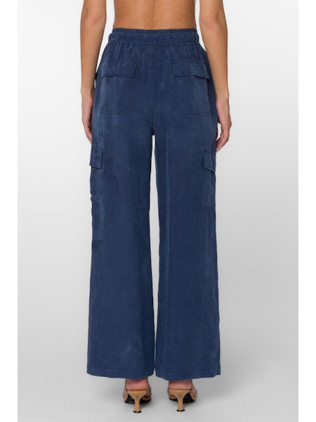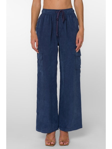 Pull On Elastic Drawstring Waist Wide Leg Cargo Pant. 60% Cupro, 40% Viscose.