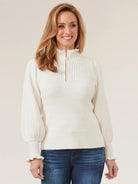 Zip Mock Neck Sweater w/ Flounce Edge